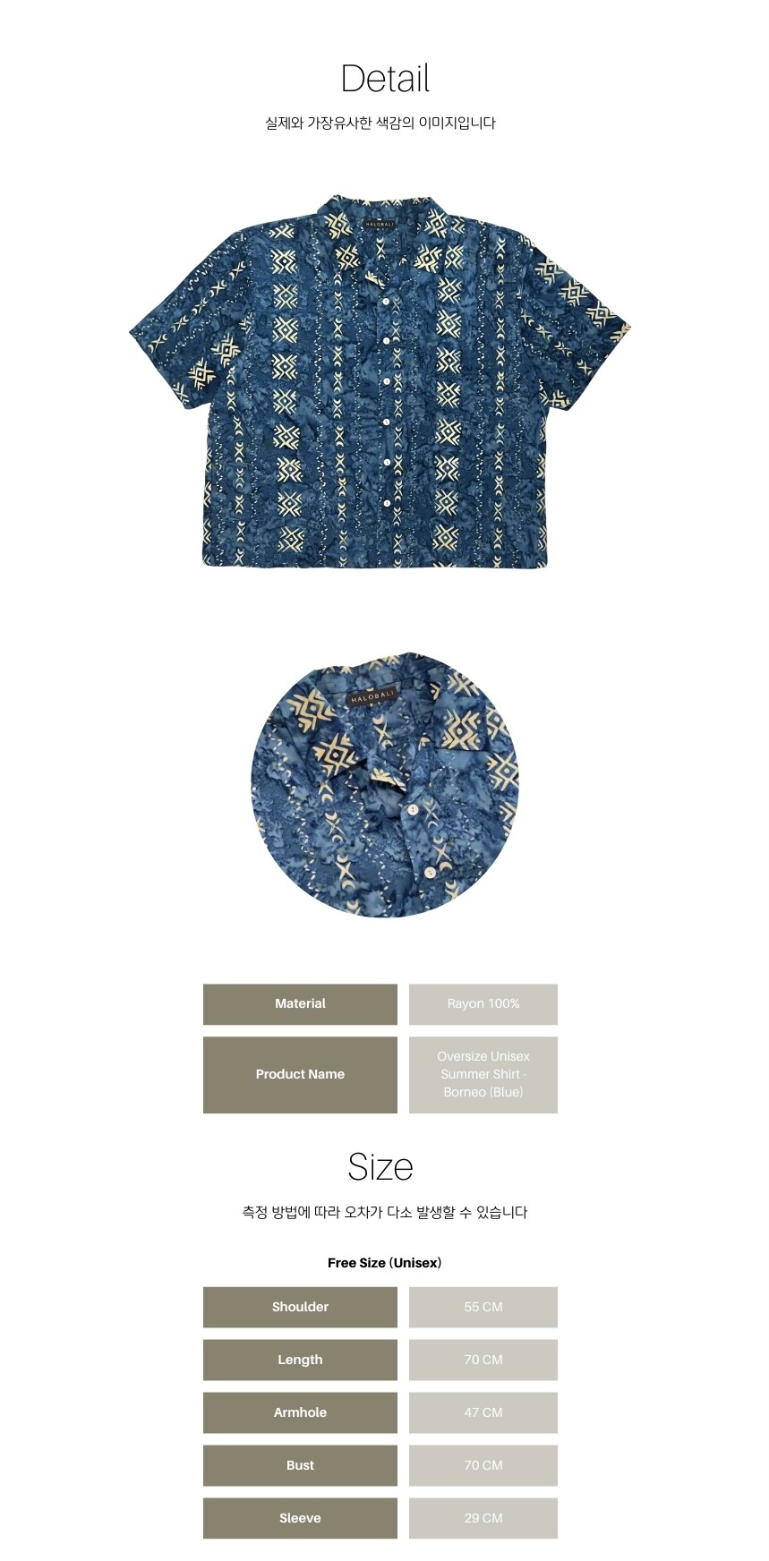 Unisex Oversize Summer Shirt - Borneo (Blue)